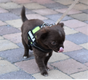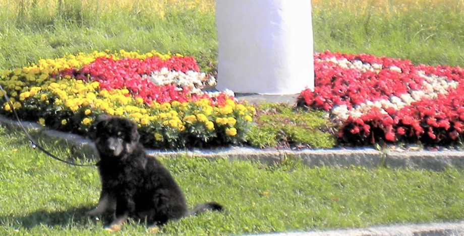 Bei den ersten Schritten mit der Leine im Freien, lasse ich die Welpen immer entscheiden, in welche Richtung sie gehen wollen.